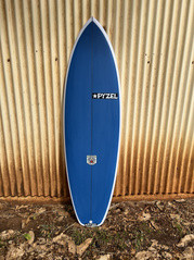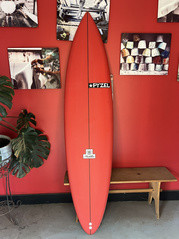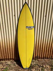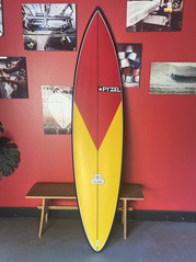 The Pyzalien 2 works great in a huge variety of waves, from points to reefs to beach break, and has one of the most user friendly, yet high performance rockers we’ve made, smooth and clean, with med/low entry running through to med+ tail rocker. The bottom has a single concave starting in the nose, running under the front foot, blending into double concave and then VEE in the last 6 inches of the tail which adds release that helps ease you into turns. This rocker/bottom combo gives the board quick, effortless speed from take-off, while increasing the responsiveness and control, allowing for easier rail to rail transitions at high speeds. The outline is clean and simple, no hips or wings just a fuller nose and wider tail which keeps the board very fast and drivey, making for easy flow through flatter sections. One of the biggest changes from the Original is a more domed deck with refined rails, so we recommend that you order it the same thickness, 1/4 to 1/2 inch wider and 2-3 inches shorter than your standard shortboard. Comes standard with a clean swallow tail for added snappiness and spark! This is a great Daily Driver board with a High Performance personality, built for most levels of surfer, from novice to Pro.