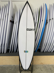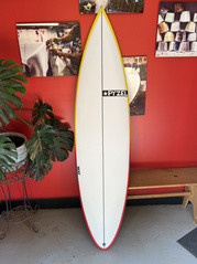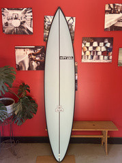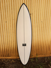 The outline is a touch on the plump side for a HPSB, but the wide point sits a more traditional inch behind center, keeping the emphasis to surfing it off the mid to back half of the board. The wider tail-block squash helps to keep area in the tail which provides lift and drive, and also helps create "pop" when going to the air. A moderate hip by the front fins puts a break in the outline to help create a pivot point that allows for tighter radius turns and release in the lip.