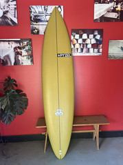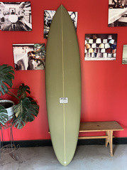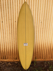The deck has a special, inset double concave shaped into the chest/front foot area that gives it that already "broken in" comfortable feeling on your very first surf. it also features an old school "beak" nose.